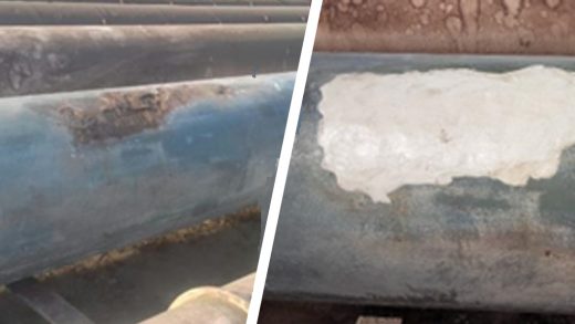 A heavily corroded section of steel pipe is reinforced, helping a site to avoid a future breach which would have required a costly and disruptive leak repair or replacement of the line