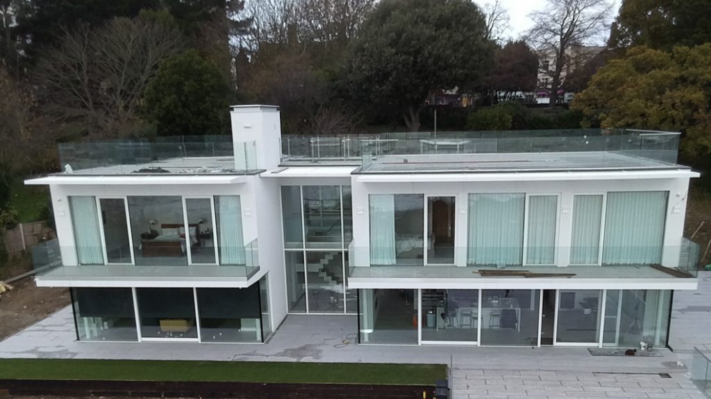 The striking property overlooking the Thames Estuary featured a roof terrace with panoramic views. Surrounding the terrace were 26 glass panels with 25mm expansion gaps either side. Below the roof terrace was another balcony where electrical installations such as LED lights and speakers had been added.
