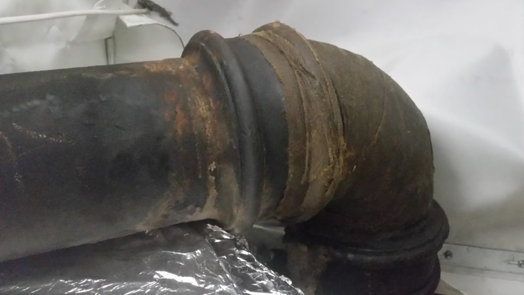 Superfast Steel Epoxy Putty applied to repair a large crack in a cast iron wastewater pipe at a London hotel