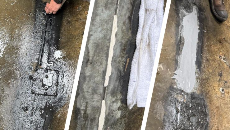 The epoxy paste was mixed using a putty knife before being used to rebuild the missing floor around the crack. It filled the damaged area with a smooth, metallic-like material offering excellent corrosion resistance to further enhance the sealing power of Aqua PW.