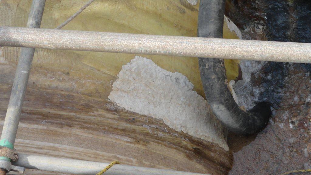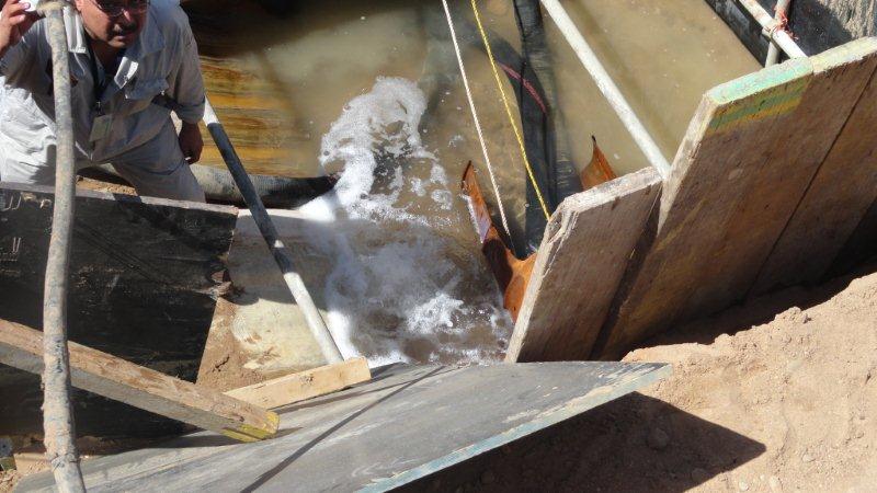 A potential problem with the return line was first flagged when the ground above a section of buried pipe was noticed to be wet. The line was taken out of service and excavation organised, leading to a hole being dug to access the top 50 percent of the vast pipe.
