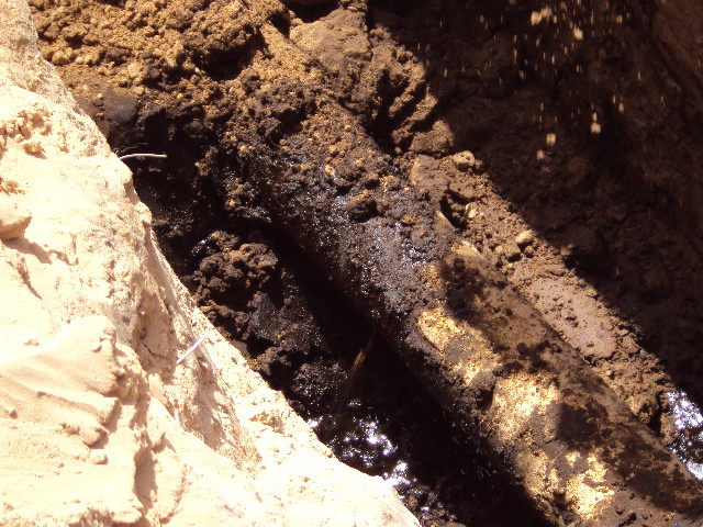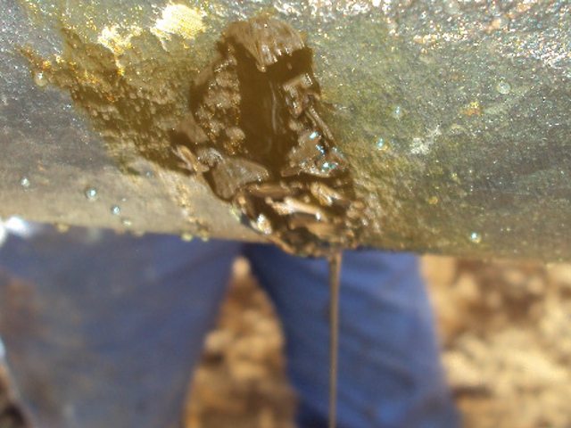 Heavy corrosion had caused a small crack to appear in a 200mm fuel oil line buried underground. Once the pipe had been excavated for inspection, it became clear that it was in terrible condition, badly pitted and covered in escaped oil.