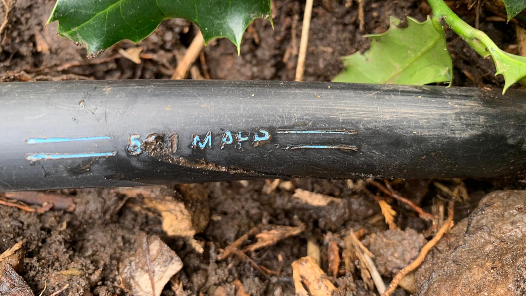 Unfortunately, the owner did not realise that buried just beneath the soil was a hose made from industrial grade plastic supplying water to the pond. As they attempted to remove the shrubs using the saw, they inadvertently cut into the hose.