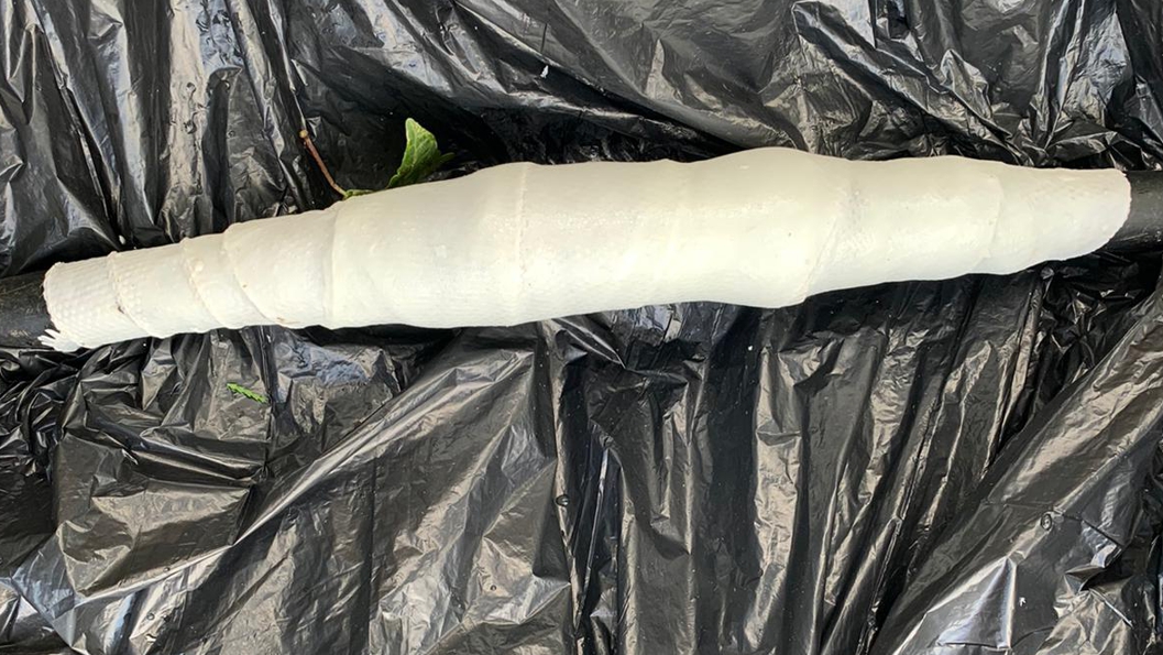 Water supply was turned off and the hose was cleaned to remove all traces of soil. A plastic sheet was then placed underneath the hose to prevent any further soil or grit being picked up during the application of the Wrap & Seal, which was wrapped across the entire damaged section.
