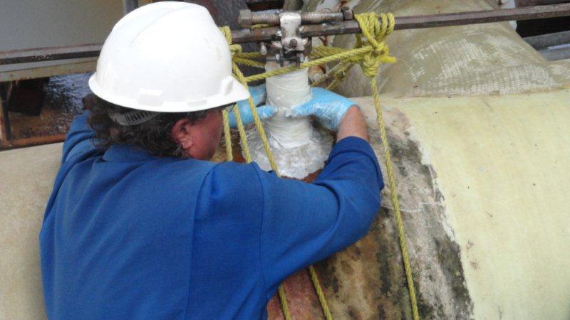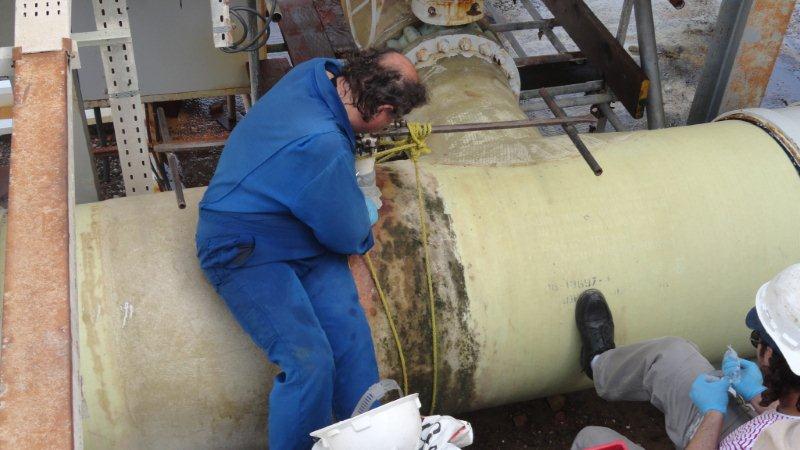 A 1500mm seawater cooling system undergoes repair and reinforcement with SylWrap HD Pipe Repair Bandage