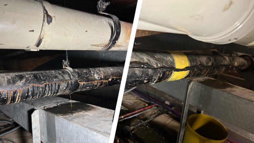 Sylmasta recommended the use of SylWrap HD Pipe Repair Bandage. SylWrap HD is a composite wrap with a water-activated resin which sets rock hard in minutes to form an impact resistant, protective sleeve around pipework.