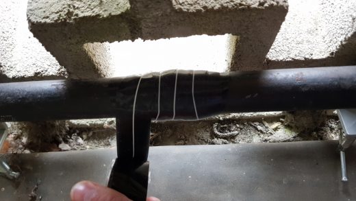 Despite being in a severely restricted space, a live leak repair is successfully made to a malleable iron water pipe using Wrap & Seal Pipe Burst Tape at a UK home